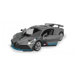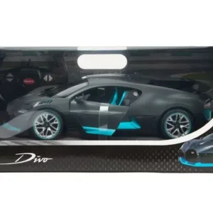 Copilul dumneavoastra se poate juca in voie cu masina cu telecomanda Bugatti Divo, scara 1 la 14, oferita de brandul international Rastar. Nicio cursa nu este imposibil de castigat cu acesta masinuta, replica oficiala cu licenta a modelului original, construita cu mare atentie la detalii. Masinuta are proportiile ideale pentru momente pline de distractie si amuzament, avand dimensiunile in centimetri dupa cum urmeaza 32.3*14.8*13.9.Masinuta functioneaza pe frecventa de 2.4G.Alimentarea se face astfel pentru masinuta sunt necesare 5 baterii tip AA , iar pentru telecomanda 2 tip AA.Masinuta se poate deplasa in toate directiile inainte, inapoi, stanga sau dreapta. Masina cu telecomanda Bugatti Divo, scara 1 la 14, poate rula cu o viteza aproximativa de 10km/h, are tractiune 2WD, anvelope de cauciuc, posibilitate de reglaj a directiei direct pe sasiu si o raza de actiune a telecomenzii de circa 20 de metri.Acesta masinuta are si o functie suplimentara care face ca farurile si stopurile masinutei sa lumineze.