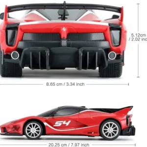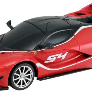 Copilul dumneavoastra se poate juca in voie cu masina cu telecomanda Ferarri FXX K EVO, scara 1 la 24, oferita de brandul international Rastar. Nicio cursa nu este imposibil de castigat cu acesta masinuta, replica oficiala cu licenta a modelului original, construita cu mare atentie la detalii. Masinuta are proportiile ideale pentru momente pline de distractie si amuzament, avand dimensiunile in centimetri dupa cum urmeaza 19*9.5*5.3.Masinuta functioneaza pe frecventa de 2.4G.Alimentarea se face astfel pentru masinuta sunt necesare 3 baterii tip AA , iar pentru telecomanda 2 tip AA.Masinuta se poate deplasa in toate directiile inainte, inapoi, stanga sau dreapta. Masina cu telecomanda Ferarri FXX K EVO, scara 1 la 24, poate rula cu o viteza aproximativa de 10km/h, are tractiune 2WD, anvelope de cauciuc, posibilitate de reglaj a directiei direct pe sasiu si o raza de actiune a telecomenzii de circa 20 de metri.