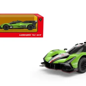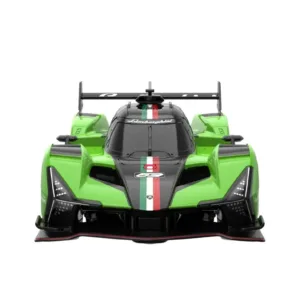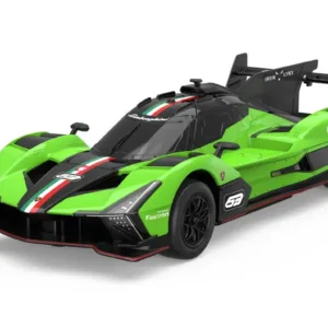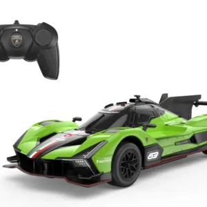 Copilul dumneavoastra se poate juca in voie cu masina cu telecomanda LAMBORGHINI SC 63, scara 1 la 24, oferita de brandul international Rastar. Nicio cursa nu este imposibil de castigat cu acesta masinuta, replica oficiala cu licenta a modelului original, construita cu mare atentie la detalii. Masinuta are proportiile ideale pentru momente pline de distractie si amuzament. Masinuta functioneaza pe frecventa de 2.4G.Alimentarea se face astfel pentru masinuta sunt necesare 3 baterii tip AA , iar pentru telecomanda 2 tip AA. Masinuta se poate deplasa in toate directiile inainte, inapoi, stanga sau dreapta. Masina cu telecomanda LAMBORGHINI SC 63, scara 1 la 24, poate rula cu o viteza aproximativa de 10km/h, are tractiune 2WD, anvelope de cauciuc, posibilitate de reglaj a directiei direct pe sasiu si o raza de actiune a telecomenzii de circa 20 de metri.