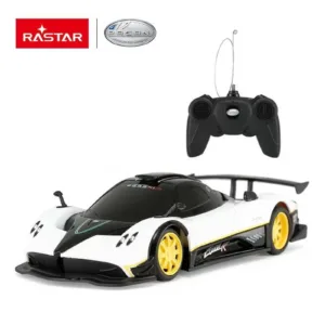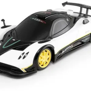 Copilul dumneavoastra se poate juca in voie cu masina cu telecomanda Pagani Zonda R, scara 1 la 24, oferita de brandul international Rastar. Nicio cursa nu este imposibil de castigat cu acesta masinuta, replica oficiala cu licenta a modelului original, construita cu mare atentie la detalii. Masinuta are proportiile ideale pentru momente pline de distractie si amuzament, avand dimensiunile in centimetri dupa cum urmeaza 20.3*8.6*5.Masinuta functioneaza pe frecventa de 2.4G.Alimentarea se face astfel pentru masinuta sunt necesare 3 baterii tip AA , iar pentru telecomanda 2 tip AA.Masinuta se poate deplasa in toate directiile inainte, inapoi, stanga sau dreapta. Masina cu telecomanda Pagani Zonda R, scara 1 la 24, poate rula cu o viteza aproximativa de 10km/h, are tractiune 2WD, anvelope de cauciuc, posibilitate de reglaj a directiei direct pe sasiu si o raza de actiune a telecomenzii de circa 20 de metri.