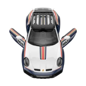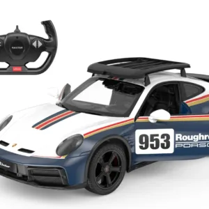 Copilul dumneavoastra se poate juca in voie cu masina cu telecomanda PORSCHE 911 DAKAR, scara 1 la 14, oferita de brandul international Rastar. Nicio cursa nu este imposibil de castigat cu acesta masinuta, replica oficiala cu licenta a modelului original, construita cu mare atentie la detalii. Masinuta are proportiile ideale pentru momente pline de distractie si amuzament.Masinuta functioneaza pe frecventa de 2.4G.Alimentarea se face astfel pentru masinuta sunt necesare 5 baterii tip AA , iar pentru telecomanda 2 tip AA.Masinuta se poate deplasa in toate directiile inainte, inapoi, stanga sau dreapta. Masina cu telecomanda PORSCHE 911 DAKAR, scara 1 la 14, poate rula cu o viteza aproximativa de 10km/h, are tractiune 2WD, anvelope de cauciuc, posibilitate de reglaj a directiei direct pe sasiu si o raza de actiune a telecomenzii de circa 20 de metri.