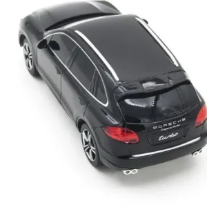 Copilul dumneavoastra se poate juca in voie cu masina cu telecomanda Porsche Cayenne Turbo, scara 1 la 24, oferita de brandul international Rastar. Nicio cursa nu este imposibil de castigat cu acesta masinuta, replica oficiala cu licenta a modelului original, construita cu mare atentie la detalii. Masinuta are proportiile ideale pentru momente pline de distractie si amuzament, avand dimensiunile in centimetri dupa cum urmeaza 20.2*8.1*7.1.Masinuta functioneaza pe frecventa de 2.4G.Alimentarea se face astfel pentru masinuta sunt necesare 3 baterii tip AA , iar pentru telecomanda 2 tip AA.Masinuta se poate deplasa in toate directiile inainte, inapoi, stanga sau dreapta. Masina cu telecomanda Porsche Cayenne Turbo, scara 1 la 24, poate rula cu o viteza aproximativa de 10km/h, are tractiune 2WD, anvelope de cauciuc, posibilitate de reglaj a directiei direct pe sasiu si o raza de actiune a telecomenzii de circa 20 de metri.
