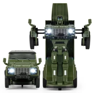 Masinuta Land Rover Defender verde este gata de a iesi din cutie! Poate fi masinuta sau robot! Efecte luminoase si sunete in timpul miscarii.Masinuta are proportiile ideale pentru momente pline de distractie si amuzament, avand dimensiunile in centimetri dupa cum urmeaza 13.5*9.5*15.5cm. Masinuta metalica Land Rover Defender verde, scara 1 la 32, are anvelope de cauciuc si un design detaliat interior-exterior realizat din material metalic turnat cu accesorii realizate din material plastic portiere de calitate superioara. Copilul dumneavoastra se poate juca in voie cu masina metalica Land Rover Defender verde oferita de brandul international Rastar. Nicio cursa nu este imposibil de castigat cu acesta masinuta, care este o replica oficiala cu licenta a modelului original, construita cu mare atentie la detalii. Pasionatii si colectionarii de machete metalice pot de asemenea aprecia aceasta macheta metalica.