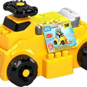 Micul tau constructor poate calatori si construi cu setul de vehicule de jucarie CAT, care include 10 blocuri mari. Copiii mici pot sta in vehicul, pot intoarce volanul si pot propulsa vehiculul cu picioare mici pentru a impinge blocurile din fata lor. Apoi pot plasa blocurile pe una dintre cele 4 suprafete – fata, spate si ambele parti ale vehiculului. Dupa ce distractia s-a terminat, puteti ascunde blocurile sub scaun, ceea ce face curatarea mult mai usoara. Jucariile de constructie First Builders au fost concepute pentru micii constructori de la varsta de 1 an.Include 1 volan Cat care se roteste, 4 suprafete construibile si 10 caramizi mari, rezistente.Copilul poate impinge din picioare si impinge blocurile spre partea din fata a vehiculului.Depozitare usoara datorita clapei scaunului pliabil.Blocurile sunt compatibile cu toate jucariile pentru pisici MEGA BLOKS, oferind o multime de optiuni de joaca.Jucarie perfecta pentru copii cu varsta cuprinsa intre 1-3 ani, recomandata de Fisher-Price. Blocurile se potrivesc perfect mainilor mici ale unui copil. Sunt concepute pentru a dezvolta dexteritatea si mobilitatea.