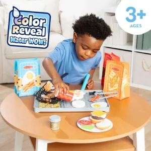 Descopera magia gatitului cu setul de mancare la gratar Water Wow. Aceasta jucarie interactiva le permite copiilor sa exploreze aventuri culinare prin simpla adaugare de apa. Pe masura ce amesteca, mancarea de jucarie se transforma din &bdquonegatita&rdquo in &bdquogatita&rdquo, oferind o surpriza incantatoare micilor bucatari. Setul include o spatula, o sticla de condimente si o solnita, toate concepute pentru a distribui apa pentru un efect de schimbare a culorii. Copiii se pot bucura de jocuri simulate cu o friteuza si o varietate de optiuni de hrana de jucarie, sporindu-le timpul de joaca imaginativ. Pentru un plus de confort, setul include pungi cu mancare si ingrediente, perfecte pentru sortare, depozitare si joaca cu tematica de restaurant. Aceasta jucarie captivanta ofera o experienta distractiva si educativa, incurajand creativitatea si invatarea prin joaca.
