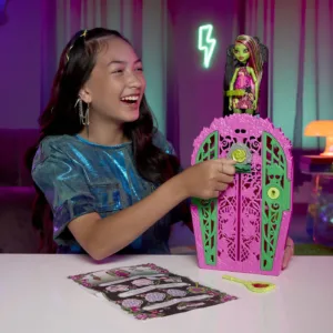 Rezolvati misterul, deblocati portile Monster High si dezvaluie o papusa Monster High cu Skulltimate Secrets Garden Mysteries! Copiii se pot juca cu un detectiv infricosator cautand indicii pe harta cu ajutorul lupei &bdquomagice&rdquo. Pe parcurs, vor descoperi peste 19 surprize pentru o experienta extraordinara de despachetare! Odata ce timpul de joaca s-a incheiat, copiii cu varsta de la 4 ani in sus pot depozita papusa, imbracamintea si accesoriile incluse in dulapul infiorator, care este perfect atat pentru povestire, cat si pentru depozitare! Fiecare se vinde separat, in functie de disponibilitate. Complet articulat. Papusile nu pot sta singure. Culorile si decoratiunile pot varia. Deblocati secretele din spatele portilor Monster High cu acest set de dulap Skulltimate Secrets Garden Mysteries! Vine cu papusa Venus McFlytrap, precum si cu haine si accesorii inspirate din plante. Venus McFlytrap are la care sa participe la o petrecere de ceai infricosatoare, dar nu se gaseste nicaieri! Cautati indicii pentru a-i descoperi locatia impreuna cu peste 19 surprize in 3 pasi infricosatori si distrasi rezolvati, deblocati, dezvaluiti. Pasul unu? Folositi tasta lupei pentru a dezvalui simboluri de pe harta comorii. Odata ce copiii descuie usile dulapului, vor gasi farmece care se potrivesc cu simbolurile hartii! Aceste farmece sunt ascunse printre surprizele infioratoare de imbracaminte si accesorii. Pune cele 3 farmece impreuna pentru a face un singur talisman misterios. Introduceti talismanul la baza dulapului, apoi glisati-l in sus ca un fermoar pentru a dezvalui papusa Venus McFlytrap in toata gloria ei boo-tanica! Repetati dezvaluirea din nou si din nou pentru distractie non-stop. Acum ca Venus McFlytrap si moda ei florale au fost gasite, este timpul sa ne pregatim! Cu peste 125 de posibilitati de combinare a tinutelor, exista atat de multe articole de panda de purtat la ora ceaiului in gradina! Exista o multime de secrete distractive ascunse in gradinile de la Monster High! Consultati intreaga colectie Skulltimate Secrets Garden Mysteries pentru mai multe papusi infricosatoare Monster High.