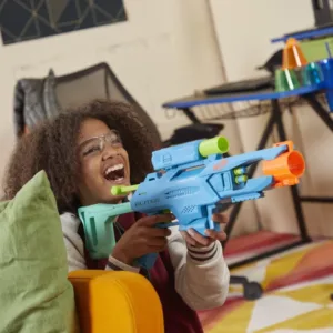 Triplati-va actiunea de lupta cu Elite Nerf 2.0 Tactical Pack, care include 3 blastere si 20 proiectile Nerf Elite! Lanseaza-te in batalii de 2 proiectile cu Operator DB-2, un blaster care trage cu 2 proiectile intr-un rand, are un locas pentru 2 proiectile, amorsare prin tragerea manerului, tinta si pat arma. Pentru un atac cu trei proiectile, apuca blasterul Trio TD-3, care dezlantuie 3 proiectile intr-un rand, are 3 locasuri pentru proiectile si o sina tactica. Pregateste-te pentru asul din joc cu As SD-1 blasterul care lanseaza un proiectil, are un sistem de amorsare cu maner, si capacitate de stocare un proiectil. Aceste blastere sunt distractive si usor de utilizat, astfel incat veti fi sari in jocuri Nerf in cel mai scurt timp! Incarcati, tintiti si apasati tragaciul -3 pasi simpli- este tot ceea ce trebuie pentru a incepe sa jucati! Acest pachet de 3 blastere este excelent pentru fanii Nerf care doresc sa-si construiasca colectiile cu un blaster pentru fiecare provocare competitiva. Este un cadou minunat pentru toata lumea! Ochelari recomandati (neinclusi). Nu sunt necesare baterii.