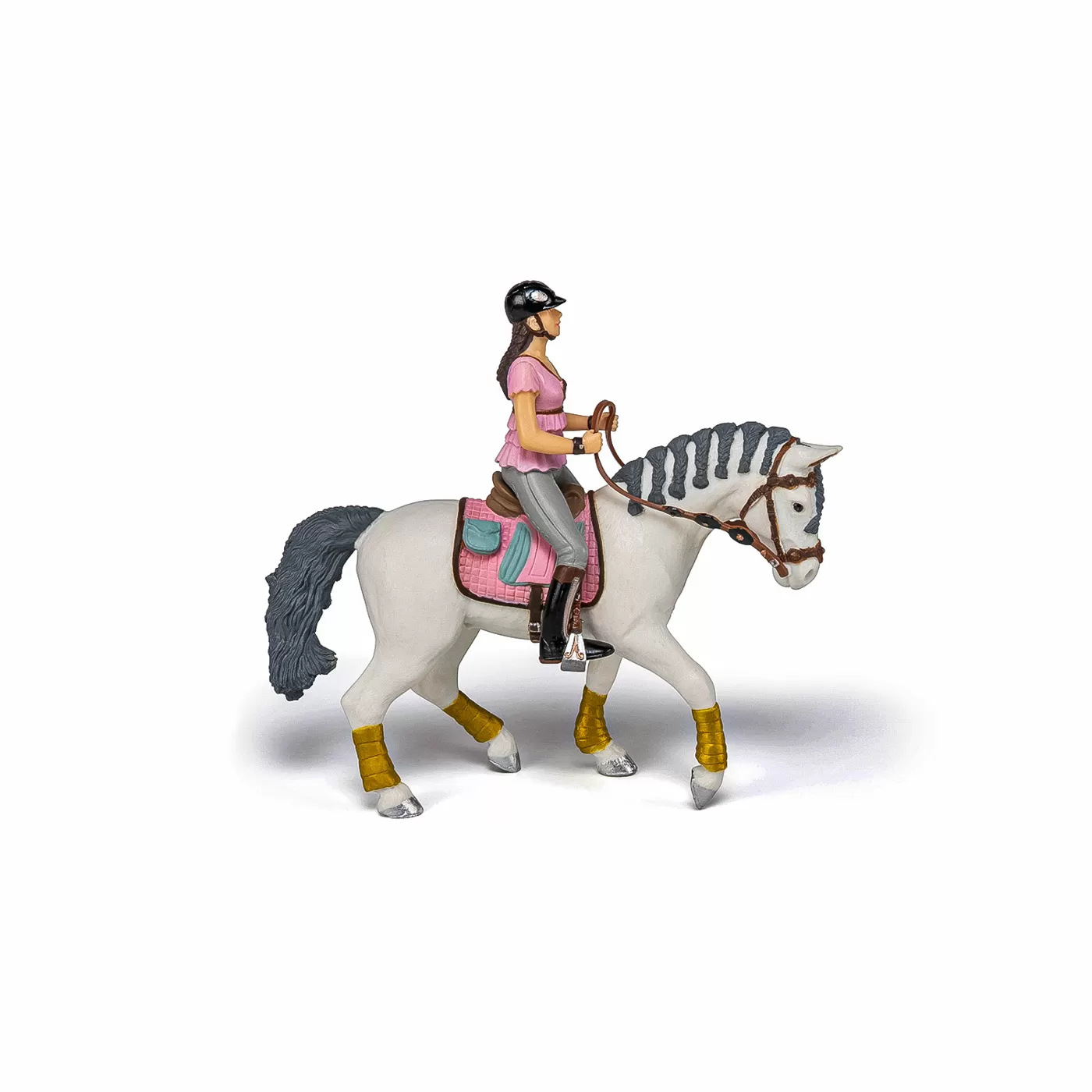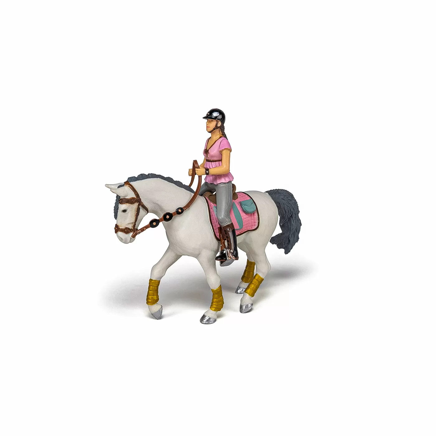 Faceti o plimbare prin campuri cu ecvinele Papo, participati la concursuri de sarituri sau chiar la cursuri de dresaj. O impletitura a comei si/sau a cozii, bine realizata este adesea considerata un mod excelent de a arata cat de bine ingrijit si pretuit este acel cal. Produsul are urmatoarele dimensiuni 14.5 x 5 x 9.5cm si este recomandat copiilor cu varsta peste 3 ani. De mai bine de 20 de ani, Papo inoveaza constant si ii face pe copii din intreaga lume sa viseze cu o gama bogata de peste 600 de produse, reprezentand 12 lumi, animale si personaje. De la modelul original la serie, fiecare dintre figurinele Papo a fost conceputa si creata in Franta pentru a fi fabricata intr-o permanenta preocupare pentru calitate. Pictate manual, atentia la detalii este acum recunoscuta. Figurinele Papo se disting prin acuratete si realism, detaliile sunt de asa natura incat am putea crede ca se vor pune in miscare.