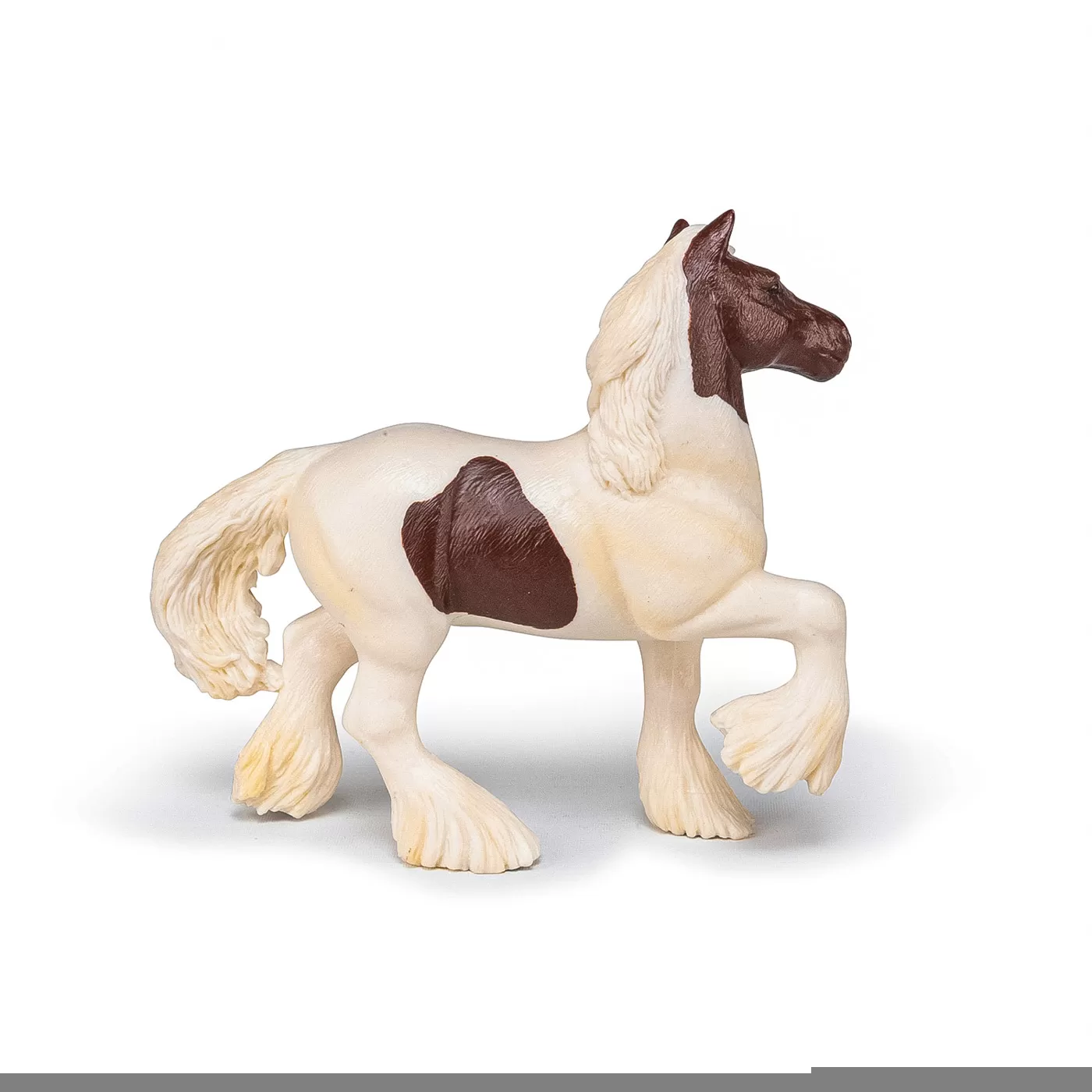 Faceti o plimbare prin campuri cu ecvinele Papo, participati la concursuri de sarituri sau chiar la cursuri de dresaj. Gypsy Cob, Irish Cob sau Tinker este o rasa din Irlanda si Anglia. Este unul dintre cei mai recunoscuti cai de rasa datorita blanii sale, capului sau ridicat si mandru, liniei sale superioare.Este acum cautat pentru capacitatea sa de a se adapta la majoritatea disciplinelor de calarie. Produsul are urmatoarele dimensiuni 13 x 4 x 12cm si este recomandat copiilor cu varsta peste 3 ani. De mai bine de 20 de ani, Papo inoveaza constant si ii face pe copii din intreaga lume sa viseze cu o gama bogata de peste 600 de produse, reprezentand 12 lumi, animale si personaje. De la modelul original la serie, fiecare dintre figurinele Papo a fost conceputa si creata in Franta pentru a fi fabricata intr-o permanenta preocupare pentru calitate. Pictate manual, atentia la detalii este acum recunoscuta. Figurinele Papo se disting prin acuratete si realism, detaliile sunt de asa natura incat am putea crede ca se vor pune in miscare.