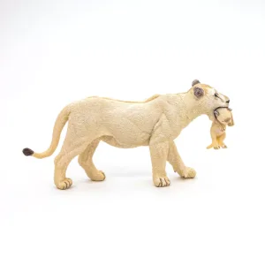 Vizitati cerbul cu coada alba maiestuoasa in inima padurilor, explorati savana alaturi de puternicul tigru de Sumatra sau urcati pe varfuri acoperite de zapada pentru a cauta leopardul de zapada. Jucaria Leoaica alba cu pui este o figurina pictata manual care aduce produsul foarte aproape de realitate prin cele mai mici detalii realizate cu o acuratete inalta. Figurina Leoaica alba cu pui poate fi o jucarie educationala pentru copii, dar si o piesa de colectie pentru pasionatii fara varsta. Leul este o specie de mamifer carnivor din familia felinelor ce traieste in Africa. Exista trei subspecii de lei leul african, leul indian si leul alb. Cele mai raspandite specii sunt leul african si cel indian, leul alb fiind foarte rar ( majoritatea traind in captivitate ). In diferite culturi , leoaica alba este considerata un animal divin, probabil datorita raritatii acestui animal. Un excelent stimulent pentru a extinde imaginatia copiilor dezvoltand multe oportunitati de joaca. Produsul are urmatoarele dimensiuni 3.5 x 14.5 x 6.5cm si este recomandat copiilor cu varsta peste 3 ani. De mai bine de 20 de ani, Papo inoveaza constant si ii face pe copii din intreaga lume sa viseze cu o gama bogata de peste 600 de produse, reprezentand 12 lumi, animale si personaje. De la modelul original la serie, fiecare dintre figurinele Papo a fost conceputa si creata in Franta pentru a fi fabricata intr-o permanenta preocupare pentru calitate. Pictate manual, atentia la detalii este acum recunoscuta. Figurinele Papo se disting prin acuratete si realism, detaliile sunt de asa natura incat am putea crede ca se vor pune in miscare.