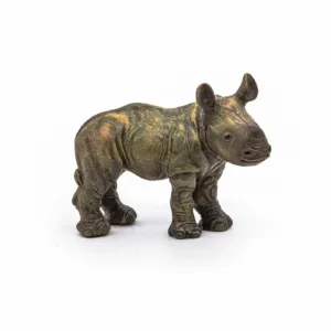 Vizitati cerbul cu coada alba maiestuoasa in inima padurilor, explorati savana alaturi de puternicul tigru de Sumatra sau urcati pe varfuri acoperite de zapada pentru a cauta leopardul de zapada. Puiul de rinocer este singurul copil care se naste dupa 450 de zile de gestatie. La nastere, greutatea sa este de aproximativ 25 kg, dar uneori poate ajunge chiar si pana la 40 kg. Puiul de rinocer are o ingrosare de aproximativ un centimetru inaltime unde va creste viitorul sau corn. Al doilea corn este marcat doar de o pata rotunda putin mai deschisa. Mama il va alapta pe micut timp de 2 ani, si il va apara de orice potential pericol. Femelele tinere isi parasesc mama la 5 ani, iar masculii mai degraba la 8. Produsul are urmatoarele dimensiuni 6.9 x 2.2 x 5cm si este recomandat copiilor cu varsta peste 3 ani. De mai bine de 20 de ani, Papo inoveaza constant si ii face pe copii din intreaga lume sa viseze cu o gama bogata de peste 600 de produse, reprezentand 12 lumi, animale si personaje. De la modelul original la serie, fiecare dintre figurinele Papo a fost conceputa si creata in Franta pentru a fi fabricata intr-o permanenta preocupare pentru calitate. Pictate manual, atentia la detalii este acum recunoscuta. Figurinele Papo se disting prin acuratete si realism, detaliile sunt de asa natura incat am putea crede ca se vor pune in miscare.