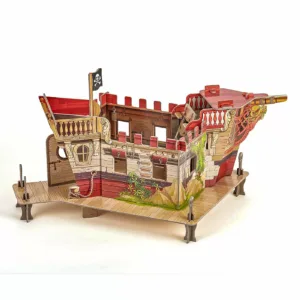 Navigati pe mari in cautarea comorilor pierdute. Puzzle-ul 3D de la Papo Papo – Corabie Pirati este o jucarie interactiva, foarte potrivita pentru orice copil care iubeste piratii si este dornic sa invete cat mai multe lucruri interesante despre ei. Datorita cartonului de foarte buna calitate folosit la confectionarea corabiei, aceasta poate fi asamblata de mai multe ori, fara a se deteriora. Corabie Pirati de la Papo este un puzzle 3D, format din 33 de piese, dezvoltand interactiv inteligenta si creativitatea copilului tau. Produsul are urmatoarele dimensiuni 46 x 37 x 29cm si este recomandat copiilor cu varsta peste 3 ani. De mai bine de 20 de ani, Papo inoveaza constant si ii face pe copii din intreaga lume sa viseze cu o gama bogata de peste 600 de produse, reprezentand 12 lumi, animale si personaje. De la modelul original la serie, fiecare dintre figurinele Papo a fost conceputa si creata in Franta pentru a fi fabricata intr-o permanenta preocupare pentru calitate. Pictate manual, atentia la detalii este acum recunoscuta. Figurinele Papo se disting prin acuratete si realism, detaliile sunt de asa natura incat am putea crede ca se vor pune in miscare.