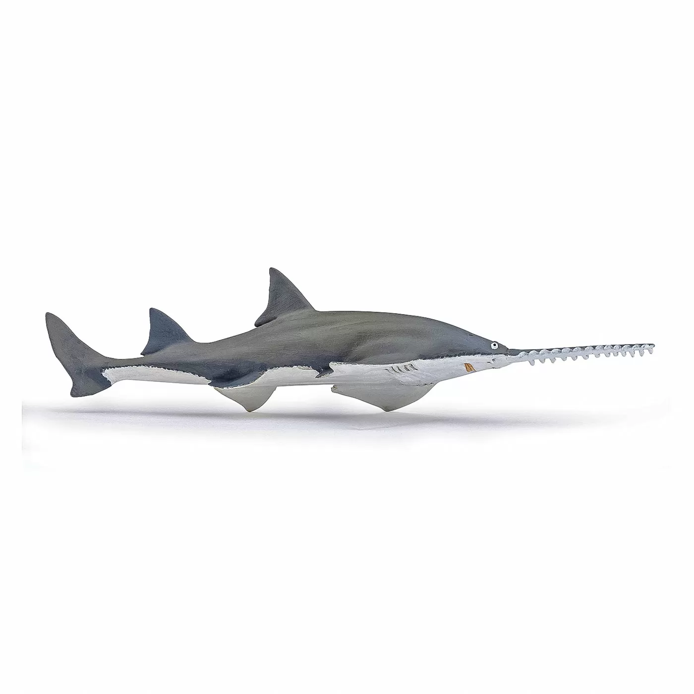 Scufundati-va cu balenele cu cocoasa, sariti in valuri alaturi de delfini sau deveniti un om-broasca capabil sa exploreze adancurile oceanului in cautarea unor exemplare magnifice precum pestele clovn. Rechinul fierastrau este raspandit in apele tropicale si subtropicale din oceanele Atlantic si Indo-Pacific. Acesta poate ajunge la o lungime de pana la 9 m, din care numai botul este de 2 m cu dinti pe ambele parti. Rechinul fierastrau isi foloseste botul zimtat pentru a-si ataca prada si pentru a se proteja. Aceasta arma face din el un adevarat pericol in apa. Produsul are urmatoarele dimensiuni 18.5 x 5.7 x 3.4cm si este recomandat copiilor cu varsta peste 3 ani. De mai bine de 20 de ani, Papo inoveaza constant si ii face pe copii din intreaga lume sa viseze cu o gama bogata de peste 600 de produse, reprezentand 12 lumi, animale si personaje. De la modelul original la serie, fiecare dintre figurinele Papo a fost conceputa si creata in Franta pentru a fi fabricata intr-o permanenta preocupare pentru calitate. Pictate manual, atentia la detalii este acum recunoscuta. Figurinele Papo se disting prin acuratete si realism, detaliile sunt de asa natura incat am putea crede ca se vor pune in miscare.