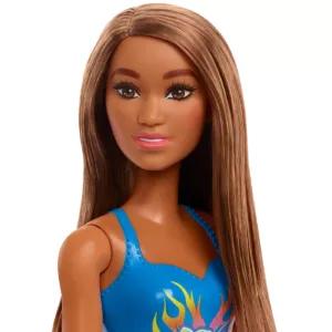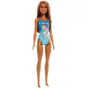 Papusa Barbie se distreaza de fiecare data cand are ocazia sa petreaca o zi la plaja, acum are si un costum minunat cu imprimeu vesel si colorat pentru balaceala. Cei mici se vor distra la petrecerile de la piscina si mai ales vacanta de vara alaturi de aceasta colectie de papusi Barbie la plaja. Acest pachet contine o papusa satena imbracata intr-un costum de baie albastru.