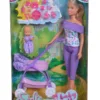 Papusa Steffi pe ringul de dans in costumul ei de balerina, inaltime 29 cm. Steffi a devenit balerina! Vezi cat de frumos arata in costumul tau! Papusa poarta un top din dantela si o fusta frumoasa din tul roz. Întregul este completat de pantofi de balet roz, o tiara si dresuri albe. În aceasta tinuta, Steffi arata ca un dansator profesionist de balet! Ia rolul unei balerine cu Steffi, creeaza scenarii interesante de distractie, inventeaza-ti povestile si traieste aventuri grozave.