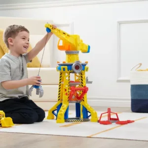 Rubble and Crew, set de joaca cu turnul de macara din curte cu figurina de actiune Rubble, buldozer de jucarie si nisip de joaca kinetic Build-It, jucarii pentru copii pentru baieti si fete de peste 3 ani. Cu Kinetic Sand Build-It-Sand si matrite pentru blocuri de constructie legendarul nisip de joaca inclus (340 g) poate fi modelat in blocuri de constructie gustoase din nou si din nou cu presa de blocuri de constructie. Figurina de jucarie extra Rubble si vehicul de constructie cu buldozer cu figurina de actiune detasabila Rubble in uniforma de santier si vehiculul sau de constructie buldozer cu lopata si excavator mobil, actiunea de constructie este in curtea cladirii.