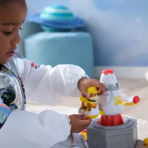Porneste intr-o calatorie stelara cu setul de joaca Rubble & Crew Launch & Spin Spaceship, conceput pentru tinerii astronauti cu varsta de 3 ani si peste. Acest set jucaus il prezinta pe indragitul Rubble din Patrula Catelusilor, care se lanseaza de pe o platforma de ridicare si se aventureaza pe orbita la bordul unei rachete spatiale care se roteste. Copiii sunt indrumati sa opereze setul de joaca cu usurinta, dezvoltandu-le atat abilitatile motorii fine, cat si imaginatia. Compact si simplu de utilizat, asigura depozitare si intretinere fara probleme, fiind un plus ideal pentru orice zona de joaca a copiilor.