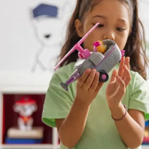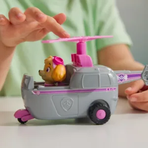 Vehiculele de baza cu functii de actiune mobile individuale si o figurina la bord permit aventurilor din serialul TV Paw Patrol sa traiasca si in camera copiilor. Este inclusa o singura figura cu un vehicul. Vehiculul si figurina de jucarie sunt in mare parte fabricate din plastic reciclat. Chase, Skye, Marshall, Rubble, Zuma, Everest, Tracker si Rocky cu vehiculele lor sunt disponibile individual. Toate vehiculele de baza durabile/vehiculele de baza includ o figurina de caine care poate fi atasata la vehicul si sunt compatibile cu setul de joaca de la sediul central, Paw Patroller si multe alte jucarii. Continut 1 vehicul, 1 figurina. Jucariile Paw Patrol de la Spin Master sunt potrivite pentru copiii de la 3 ani si peste si un cadou grozav pentru toti fanii Paw Patrol carora le place sa se joace cu masini de jucarie, figurine de jucarie si seturi de joaca. Acest set contine vehicul Elicopter si figurina Skye.