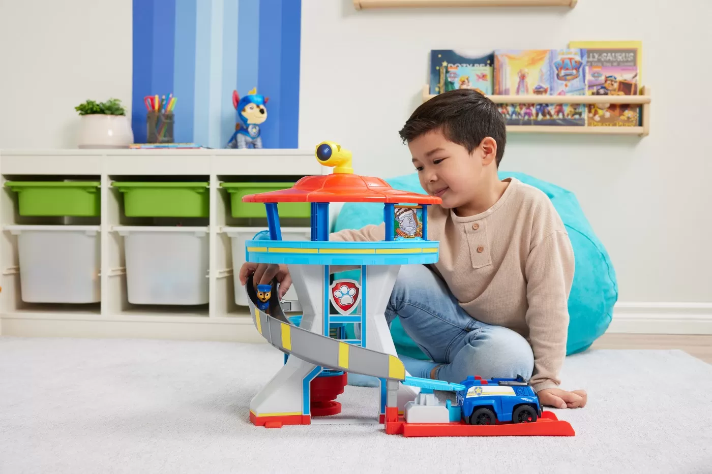 Chase este gata de actiune in setul de joc Turnul de observatie Patrula Catelusilor. Acest set de joaca exclusiv include Turnul de observatie din serial, alaturi de crucisatorulde politie al lui Chase si doua figurine de actiune Chase Chase in timpul Liber si Chase Catelusul Erou. Cu o inaltime de 50,8 cm, turnul de observatie este locul perfect dincare poti vedea orice fel de probleme care apar. Atunci cand este nevoie sa pornesti intr-o misiune de salvare interesanta, pune figurina Chase in timpul liber in fata liftuluiturnului si figurina Chase Catelusul Erou in spatele liftului. Ridica liftul pentru a-l face sa se roteasca si priveste cum Chase aflat in timpul liber se pregateste de actiune intimp ce se transforma in Chase eroul. Odata ce se afla in varful Turnului de observatie, treci la panoul de control al misiunii pentru a-ti selecta detaliile misiunii pentru ziuarespectiva, alegand una dintre cele 3 carti de misiune cu doua fete. Dupa ce ai selectat cardul de misiune, alege una dintre cele 3 carti cu periscop cu doua fete, pentrua vedea prin periscopul turnului, astfel incat sa stii unde veti merge. Atunci cand este timpul pentru o super misiune de salvare, gliseaza-l pe Chase in jos pe toboganulturnului pentru a sari direct in crucisatorul de politie, iar apoi apasa pe lansatorul de vehicul si pleaca in actiune. Pentru si mai multe moduri de joc, colectioneaza restul puiloruimitori din Patrula, precum Marshall, Skye si Rubble, impreuna cu vehiculele lor de baza, pentru a avea parte de aventuri si mai interesante in timpul jocului. Cu jucariilePatrula Catelusilor, copiii isi pot explora imaginatia si isi pot dezvolta abilitatile motorii, prin jocuri de simulare, in timp ce aduc la viata scenele preferate din serial. Figurinelede actiune, masinile de jucarie, seturile de joaca si animalele de plus Patrula Catelusilor sunt jucariile perfecte pentru baietii si fetele cu varsta de cel putin 3 ani. Ia acasachiar astazi entuziasmul Patrulei Catelusilor.