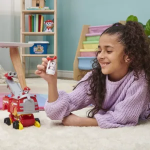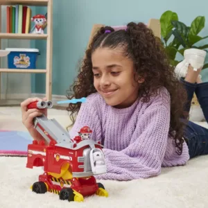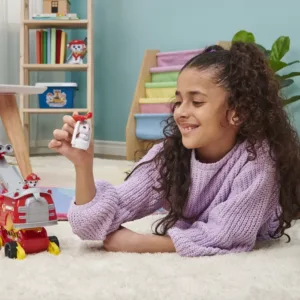 Porneste la salvare cu seriful din patrula catelusilor si vehiculul sau de salvare! Autospeciala de pompieri a serifului Marshall are grafica si detalii autentice, o zona de depozitare pentru accesorii si o transformare interesanta de salvare. Cand vine timpul pentru o salvare palpitanta, pune-ti figurina Marshall pe scaunul soferului si porneste cu viteza in misiunea ta. Odata ce ajungi, apasa pe vehicul pentru a intra in modul de salvare – vehiculul se ridica, pentru a dezvalui lansatoarele de proiectile si drona de salvare, oferindu-i in acelasi timp lui Marshall vederea perfecta pentru o salvare palpitanta! Lanseaza proiectilele de apa pentru a indeparta obstacolele. Pentru misiuni de salvare in locuri greu accesibile, deschide compartimentul de depozitare din spatele vehiculului si trimite drona de salvare a lui Marshall si cosul de recuperare pentru a o duce pe Chickaletta in zbor in siguranta! (figurina inclusa) Dupa ce Chickaletta a fost salvata, agata cosul in partea din fata a vehiculului pentru a-i oferi un loc sigur in care sa calatoreasca pe drumul de intoarcere spre casa. Da viata salvarilor tale pline de actiune, in timp ce iti folosesti imaginatia pentru a-ti indeplini misiunile. Pentru si mai multe aventuri de salvare, cauta vehiculul Chase porneste si salveaza (vandut separat). Jucariile cu vehicule Porneste si Salveaza pentru baieti si fetite de 3 ani sunt cadourile perfecte pentru copii. Formeaza o echipa cu catelusul tau favorit din patrula catelusilor si Marshall, si salveaza ziua cu vehiculul sau de ridicare si salvare!