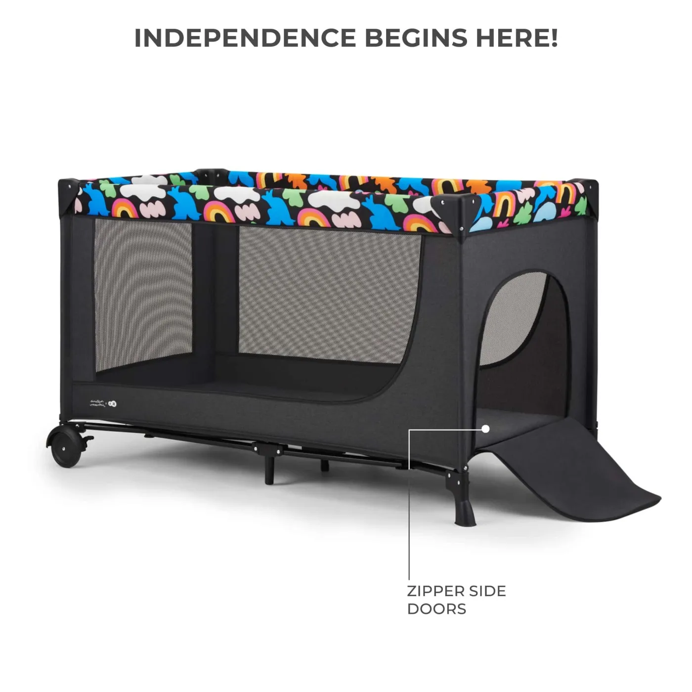 Patut pentru calatorie 2 in 1 Kinderkraft JOY 2 BLACK este un patut pliabil, care a fost creat cu gandul la parintii carora le plac solutiile multifunctionale. JOY 2 BLACK este un patut 2 in 1 pentru copii. Datorita designului sau suplu si culorilor universale va deveni rapid piesa de mobilier preferata din casa voastra. JOY 2 BLACK se pliaza la dimensiuni compacte in numai 5 secunde. Acest patut este foarte usor, dar in acelasi timp si foarte rezistent. Are de asemenea o geanta comoda cu maner, ideala in calatorii. JOY 2 BLACK este perfect si pentru utilizarea zilnica acasa. Are o intrare laterala inchisa cu un fermoar care este ideala pentru copiii ce merg de-a busilea. JOY 2 BLACK este solutia perfecta pentru fiecare casa – se regaseste in orice spatiu, iar atunci cand este nevoie se pliaza usor pentru depozitarea in dulap. Patut 2 in 1 JOY 2 BLACK este un singur patut, dar care indeplineste 2 functii patut pentru copiii mai mari si patut de calatorie. Patutul are iesirea in lateral, inchisa cu fermoar pentru ca cei mici sa poata intra si iesi singuri din locul de joaca. Patutul ideal pentru calatorii JOY 2 BLACK se pliaza la dimensiuni compacte in numai 5 secunde. Încape cu usurinta in portbagajul masinii, chiar si atunci cand aveti bagaje mari. Patutul vine impreuna cu o geanta de calatorie cu maner astfel iti va fi usor sa iei patutul intr-o mana si sa urci scarile. Dimensiunile reduse de dupa pliere fac depozitarea lui JOY 2 BLACK in casa mai usoara. În casa si afara JOY 2 BLACK poate fi utilizat si in exterior, ca de exemplu pe balcon sau terasa. Peretii din plasa fac posibila observarea continua a copilului si ii asigura in acelasi timp celui mic circulatia optima a aerului in zilele calde. JOY 2 BLACK este dotat si cu doua roti care te ajuta atunci cand muti patutul dintr-o camera in alta. Îl vei putea vedea mereu pe copil. Material sigur JOY 2 BLACK este un patut sigur, construit din materiale testate si placute la atingere. În plus, colturile patutului sunt protejate. Materialul patutului se curata in doar cateva clipe cu o carpa umeda, iar un mare avantaj este timpul scurt necesar pentru uscare. În plus, nu se increteste chiar daca pliezi si depliezi patutul frecvent. JOY 2 BLACK va arata mereu elegant. Se potriveste fiecarui interior JOY 2 BLACK are culori frumoase si universale, care se asorteaza aproape fiecarei incaperi. Patutul are o constructie usoara si supla, care il face perfect in sufragerie, dormitor sau camera copilului.