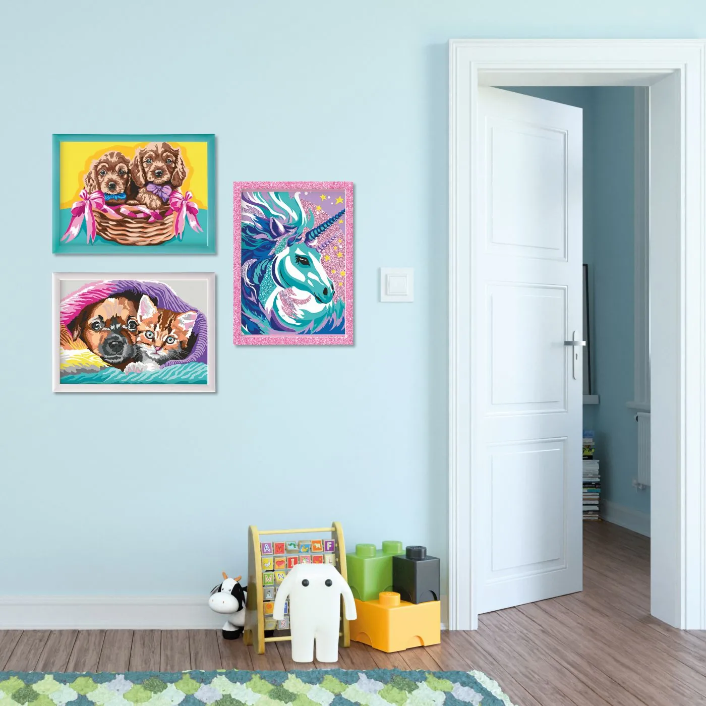 Pictaza si Inrameaza Catelusi Adorabili este setul perfect pentru micii artisti care vor sa isi exprime creativitatea prin culoare si sa creeze o adevarata opera de arta! Bazat pe tehnica de colorare pe numere, acest set ii invata pe copii sa coloreze cu atentie si precizie, imbunatatindu-si astfel talentul artistic, rabdarea si abilitatile motorii fine. La final, fiecare copil se va bucura de o pictura reusita, gata de inramat si expus cu mandrie. Satisfactie si bucurie garantata! Transforma-te in artist si creeaza un tablou plin de culoare, ideal pentru a decora camera copiilor sau pentru a fi oferit cadou. Setul include10 culori acrilice gata preparate, 1 paleta, 1 card preimprimat, 1 pensula, 1 rama, 1 manual de utilizare. Cu Pictaza si Inrameaza, oricine poate deveni artist!