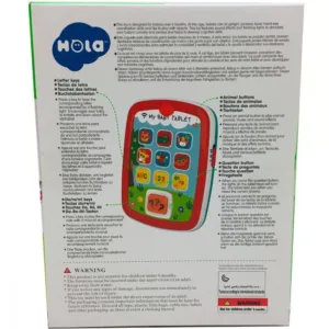 Prima tableta Hola Toys cu lumini si sunete va oferi copilului dumneavoastra momente pline de distractie si veselie, iar dumneavoastra, privindu-l, zambete. Apasa pe butoane, urmareste culorile, asculta sunetele, aceste simple dar extrem de importante activitati sunt benefice pentru dezvoltarea inteligentei si atrag, dupa sine, curiozitatea copilului in timpul jocului. Luminile emise de catre aceasta ii starnesc curiozitatea, descoperind noi moduri de a se juca. Dezvolta perceptia vizuala si coordonarea dintre maini si ochi. Formele speciale si culorile vii incurajeaza copilul sa exerseze si sa se joace stimuland astfel dezvoltarea individuala. Imaginile produsului sunt cu titlu de prezentare, culorile anumitor mici elemente pot varia. Reda sunete de animale, cifre si litere, note muzicale. Melodiile/frazele/suntele redate de jucarie sunt in limba engleza.