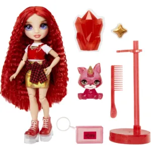 Rainbow High inspira copiii sa fie creativi. Curcubeul straluceste puternic, la fel si noile papusi Classic Rainbow! Descopera si joaca-te cu Ruby Anderson intr-un nou mod fantastic! Acum, cu Liquid Rainbow Slime exista mai multa culoare, mai multa stralucire, mai multe modalitati de joaca! Si, pentru prima data, papusa ta preferata vine cu propriul animal de companie, care, de asemenea, straluceste!Ruby Anderson este articulata pentru scenarii de joaca nelimitate si pline de farmec!Vine cu o tinuta completa inclusa si accesorii. Ruby este imbracata din cap pana in picioare in rosu!Pentru prima data, Ruby are adorabilul ei animal de companie magic cu corn – Razzberry. Pentru a schimba culoarea animalutului, ii poti umple corpul cu slime.Ruby Anderson vine cu pantofi draguti si o geanta pe care le poti personaliza si carora le poti schimba culoarea adaugand niste slime.Are trasaturi superbe si detaliate si par frumos!Include o papusa cu tinuta completa, pantofi, geanta, animal de companie, slime si sclipici.Colectioneaza toate papusile Rainbow High din gama Classic Rainbow si vei avea toate culorile curcubeului! Fiecare papusa are propriul stil care ii exprima perfect personalitatea. De asemenea, fiecare papusa vine cu culoarea de slime asortata rosu, portocaliu, galben, verde, albastru, violet sau roz. Exista o multime de moduri de a-ti imagina o joaca distractiva si creativa cu aceste papusi! Imbraca-le in fiecare look, iar daca ai doua sau mai multe papusi din gama Classic Rainbow le poti schimba si asorta piesele vestimentare intre ele!