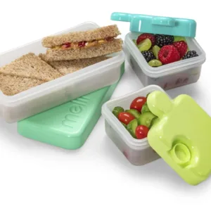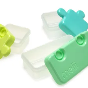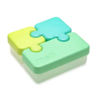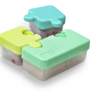 Recipient hrana bebe model puzzle, Melii, albastru&ampverde Recipientul nostru de depozitare a hranei cu 3 compartimente face hranirea distractiva! Cele trei compartimente ale cutiei PUZZLE albastru&ampverde se incastraza una in cealalta formand o jucarie puzzle distractiva si colorata. Acest recipient jucaus este perfect pentru copiii de toate varstele, care adora sa se joace si sa se fofileze in timpul gustarii si pranzului. Sigiliul din silicon alimentar de calitate face recipientul durabil, ermetic, antipicurare si, desigur, fara mizerii in timpul transportului. Acestea pot fi utilizate in cuptorul cu microunde si in congelator, dar mai ales sunt elegante si distractive! Se potrivesc perfect in rucsaci si genti de pranz si sunt excelente pentru utilizarea acasa, pentru gustari la scoala sau in timpul calatoriilor. CARACTERISTICI PRODUS Capacul ermetic si antipicurare pentru a opri mizeriile. Portii dimensionate perfect pentru copii Sigur pentru cuptorul cu microunde si congelator Usor de curatat si sigur in masina de spalat vase pe raftul superior Material Plastic, Fara BPA, plumb, PVC, cadmiu, ftalati Capacitate a celor 3 compartimente de 200 ml/ 6.7 fl oz, 200 ml/ 6.7 fl oz, 450 ml/ 15.2 fl oz
