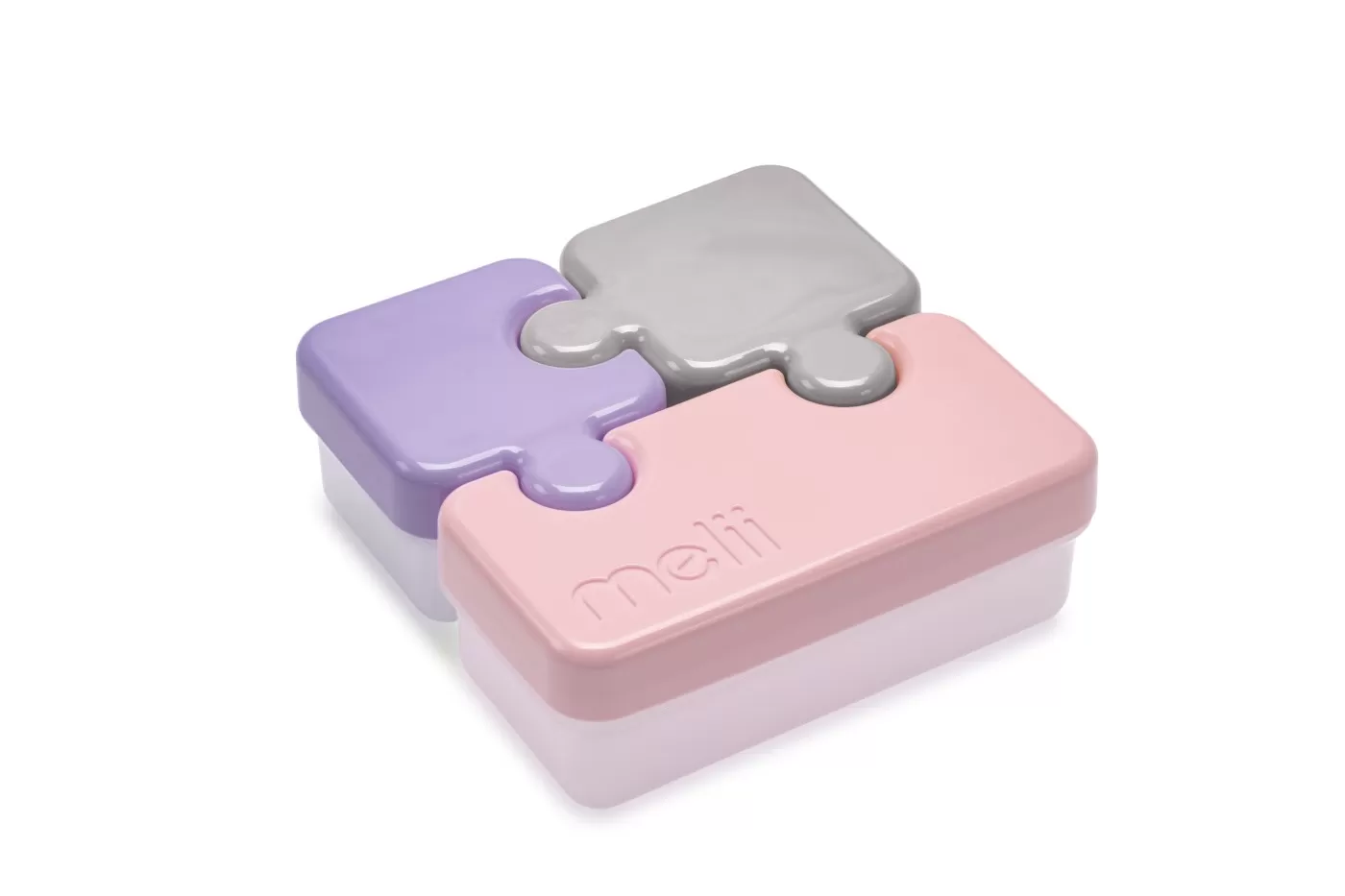 Recipient hrana bebe model puzzle, Melii, gri&ampmov Recipientul nostru de depozitare a hranei cu 3 compartimente face hranirea distractiva! Cele trei compartimente ale cutiei PUZZLE gri&ampmov se incastraza una in cealalta formand o jucarie puzzle distractiva si colorata. Acest recipient jucaus este perfect pentru copiii de toate varstele, care adora sa se joace si sa se fofileze in timpul gustarii si pranzului. Sigiliul din silicon alimentar de calitate face recipientul durabil, ermetic, antipicurare si, desigur, fara mizerii in timpul transportului. Acestea pot fi utilizate in cuptorul cu microunde si in congelator, dar mai ales sunt elegante si distractive! Se potrivesc perfect in rucsaci si genti de pranz si sunt excelente pentru utilizarea acasa, pentru gustari la scoala sau in timpul calatoriilor. CARACTERISTICI PRODUS Capacul ermetic si antipicurare pentru a opri mizeriile. Portii dimensionate perfect pentru copii Sigur pentru cuptorul cu microunde si congelator Usor de curatat si sigur in masina de spalat vase pe raftul superior Fara BPA, plumb, PVC, cadmiu, ftalati Capacitate a celor 3 compartimente de 200 ml/ 6.7 fl oz, 200 ml/ 6.7 fl oz, 450 ml/ 15.2 fl oz