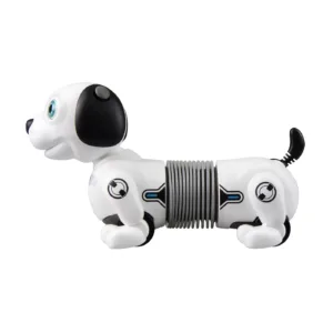 Robot RC Junior Dackel cu 6 caracteristici. Se intinde pana la 70% din lungimea lui! Aduce obiecte, reactioneaza la petting si gesturi. Te va urma oriunde!