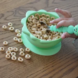 Set 2 boluri silicon cu ventuza, Melii, model dinozaur Sa fim sinceri, hranirea copiilor nu este o sarcina usoara – este dezordonata! Bolurile noastre cu ventuza din 100% silicon sunt menite sa faca ora mesei mai putin stresanta si mai distractiva. Pur si simplu plaseaza-l pe o suprafata plata si lasa ventuza sa faca magia. Nu mai trebuie sa-ti faci griji ca bolurile vor zbura si ajung rasturnate pe podea! Varietatea de designuri cu animale incurajeaza alimentatia independenta, creand o asociere pozitiva cu ora mesei. Aceasta caracteristica este ideala pentru bebelusi si copii mici, pe masura ce invata sa se hraneasca singuri. Compatibil cu toate tipurile de scaune inalte. Fa din ora mesei o activitate distractiva cu copilul tau! Mai putin stres si FaRa MIZERIE! Colectioneaza toate cele 5 modele dragute de animale. CARACTERISTICI PRODUS Design vesel si prietenos 100% realizate din silicon alimentar, ventuza mare care mentine bolul fixat, capacitate 300ml, include 2 boluri la pachet. Sigure pentru utilizare in cuptorul cu microunde sau congelator sii cel mai important, animalele fac hranirea distractiva! Se pot cuibari si stivui cu usurinta in dulapurile din bucatarie pentru o depozitare compacta. Ajuta la alimentatia independenta Bolurile Melii cu ventuza model dinozaur sunt 100% din silicon si vor incuraja alimentatia independenta si dezvoltarea abilitatilor motorii fine. Diferitele designuri cu animale ofera o asociere pozitiva cu ora mesei. Bolul ramane pe loc, indiferent cat de tare incearca mancaciosul tau sa il arunce pe podea. Excelent pentru bebelusi si prescolarii care invata sa se hraneasca singuri. Se potriveste cu toate scaunele inalte. Non-toxice Produsele Melii sunt de inalta calitate si nu contin substante chimice nocive fara BPA, fara plumb, fara cadmiu, fara PVC si sunt fabricate din 100% silicon alimentar. Sunt fabricate din silicon moale si durabil, fara margini ascutite. Sunt rezistente si flexibile. Utilizare in masina de spalat vase Curatati temeinic cu detergent si apa calda sau pe raftul superior al masinii de spalat vase inainte de prima utilizare si dupa cum este necesar. Inspectati produsul inainte de fiecare utilizare si aruncati-l la primul semn de deteriorare sau slabiciune.