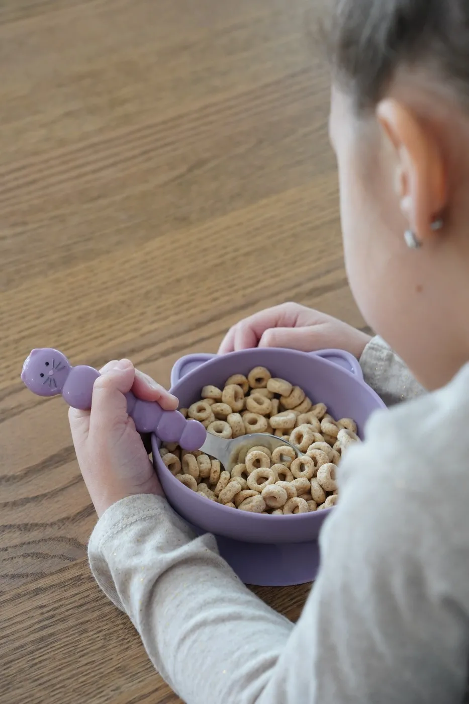 Set 2 boluri silicon cu ventuza, Melii, model pisica Sa fim sinceri, hranirea copiilor nu este o sarcina usoara – este dezordonata! Bolurile noastre cu ventuza din 100% silicon sunt menite sa faca ora mesei mai putin stresanta si mai distractiva. Pur si simplu plaseaza-l pe o suprafata plata si lasa ventuza sa faca magia. Nu mai trebuie sa-ti faci griji ca bolurile vor zbura si ajung rasturnate pe podea! Varietatea de designuri cu animale incurajeaza alimentatia independenta, creand o asociere pozitiva cu ora mesei. Aceasta caracteristica este ideala pentru bebelusi si copii mici, pe masura ce invata sa se hraneasca singuri. Compatibil cu toate tipurile de scaune inalte. Fa din ora mesei o activitate distractiva cu copilul tau! Mai putin stres si FaRa MIZERIE! Colectioneaza toate cele 5 modele dragute de animale. CARACTERISTICI PRODUS Design vesel si prietenos 100% realizate din silicon alimentar, ventuza mare care mentine bolul fixat, capacitate 300ml, include 2 boluri la pachet. Sigure pentru utilizare in cuptorul cu microunde sau congelator sii cel mai important, animalele fac hranirea distractiva! Se pot cuibari si stivui cu usurinta in dulapurile din bucatarie pentru o depozitare compacta. Ajuta la alimentatia independenta Bolurile Melii cu ventuza model pisica sunt 100% din silicon si vor incuraja alimentatia independenta si dezvoltarea abilitatilor motorii fine. Diferitele designuri cu animale ofera o asociere pozitiva cu ora mesei. Bolul ramane pe loc, indiferent cat de tare incearca mancaciosul tau sa il arunce pe podea. Excelent pentru bebelusi si prescolarii care invata sa se hraneasca singuri. Se potriveste cu toate scaunele inalte. Non-toxice Produsele Melii sunt de inalta calitate si nu contin substante chimice nocive fara BPA, fara plumb, fara cadmiu, fara PVC si sunt fabricate din 100% silicon alimentar. Sunt fabricate din silicon moale si durabil, fara margini ascutite. Sunt rezistente si flexibile. Utilizare in masina de spalat vase Curatati temeinic cu detergent si apa calda sau pe raftul superior al masinii de spalat vase inainte de prima utilizare si dupa cum este necesar. Inspectati produsul inainte de fiecare utilizare si aruncati-l la primul semn de deteriorare sau slabiciune.