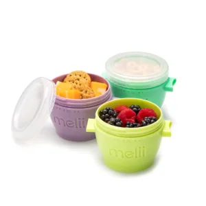 Set 4 recipiente plastic Snap&ampGo, Melii, 118 ml Congelarea portionata a hranei pentru bebelusi nu a fost niciodata mai rapida! Pur si simplu turnati mancarea pentru bebelusi in recipiente, puneti-le in congelator si, cand aveti nevoie, Rupeti o cutie pentru a decongela! Aceste capsule colorate nu sunt doar distractive pentru copii, ci si practice pentru parinti – capsulele se pot atasa orizontal sau vertical, facilitand incadrarea in congelator, in orice configuratie. Aceste capsule cresc odata cu copii, fiind disponibile in mai multe dimensiuni si pot fi folosite mult timp dupa faza de piure. Folositi-le ca recipiente distractive pentru gustari, punand o gustare diferita in fiecare dintre cele 4 compartimente, atasati-le intr-o singura linie lunga si serviti sau utilizati-le pentru gustari portionate inteligent intr-o cutie de pranz, posibilitatile sunt nelimitate! CARACTERISTICI PRODUS 4 containere detasabile si usor de stivuit, colorate in mai multe culori Recipientele se pot atasa orizontal sau vertical Capac ermetic si antipicurare pentru a preveni varsarile si inghetarea in congelator Sigur pentru cuptorul cu microunde, congelator si masina de spalat vase pe raftul superior Fara BPA, plumb, PVC, cadmiu, ftalati Disponibile in dimensiuni de 59 ml, 118 ml, 180 ml