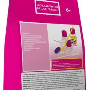 Cu aceasta jucarie educativa, micul laborator de luciu de buze, vei invata cum sa creezi propriile luciuri de buze si scruburi! Exploreaza-ti culorile preferate, personalizeaza si parfumeaza-ti glossurile si distreaza-te realizand produse cosmetice uimitoare, invatand in acelasi timp stiinta ingrijirii buzelor! Continutul kitului pahar gradat mic, baza de parfum dulce, ceara de albine alba, ulei de ricin, pipeta Pasteur, spatula, recipient pentru luciu de buze.