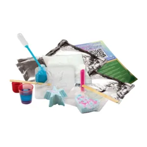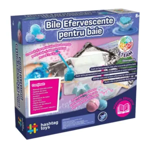 Distreaza-te creand bombe de baie colorate fantastice cu acest set! Invata sa realizezi experimente chimice educative uimitoare si lasa-ti imaginatia sa zboare cu aceasta jucarie de baie fantastica! Pregateste-le si urmareste efectul lor efervescent incredibil! Continutul setului spatule de lemn, forme pentru bilele efervescente pentru baie, amidon, bicarbonat de sodiu, acid citric, pipete Pasteur, pahar mic de masurat, sclipici roz, pigment cosmetic albastru.