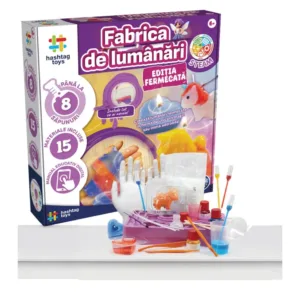 SET FABRICA DE LUMANARI. Cu aceasta jucarie magica si educativa, poti crea pana la 8 lumanari fermecate, personalizandu-le cu culorile si aromele tale preferate! Nu rata ocazia &mdash fii printre primii care se bucura de noile kituri Science4you mai moderne, mai vibrante si mai distractive ca niciodata! Continutul setului suport pentru fitil, masa de laborator, pahare mari de masurat, spatule din lemn, manusi, pipete Pasteur, fitiluri, pensula, pahar mic de masurat, forma de unicorn 3D, forma de inima, parafina pentru lumanari, pigment albastru, pigment rosu, pigment galben, baza de parfum dulce, unelte de modelaj.