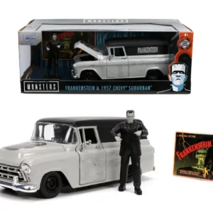 Masinuta din metal Chevy Suburban, cu usi, capota si portbagaj ce se pot deschide, include si figurina din metal Frankenstein. Nicio colectie nu este suficient de infricosatoare daca Frankenstein nu face parte din ea! Acest combo distractiv prezinta un vehicul Chevy Suburban turnat sub presiune 1957 la scara 124 impreuna cu Frankenstein inspirat de tema, include o figura de colectie Frankenstein turnata sub presiune care masoara aproximativ 7 cm inaltime si, de asemenea, vine cu o replica a cardului de lobby pentru readuce acea senzatie nostalgica. Va iesi in evidenta in orice colectie si va crea o piesa de conversatie buna!