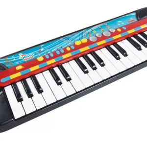 -Orga muzicala My music World 50 cm. -Orga electronica, 32 clape, 15 melodii demo, 8 ritmuri si 4 sunete de tobe. -Functie de inregistrare numai a sunetului. -Necesita 3 baterii tip AA LR6 de 1,5V(sunt incluse). -Dimensiune50 cm. -Varsta recomandata 3 ani +. SIMBA 106833149 Avertisment Contraindicat copiilor mai mici de 3 ani. Produsul poate contine piese mici, care se pot inghiti sau inhala,existand pericolul de sufocare. Nu lasati ambalajele jucariilor la indemana copiilor.Indepartati orice ambalaj al produsului inainte de a-l oferi copilului.Pastrati instructiunile si etichetele pentru referinte viitoare. Pastrati produsul departe de foc.Feriti produsul de temperaturi ridicate si umiditate.