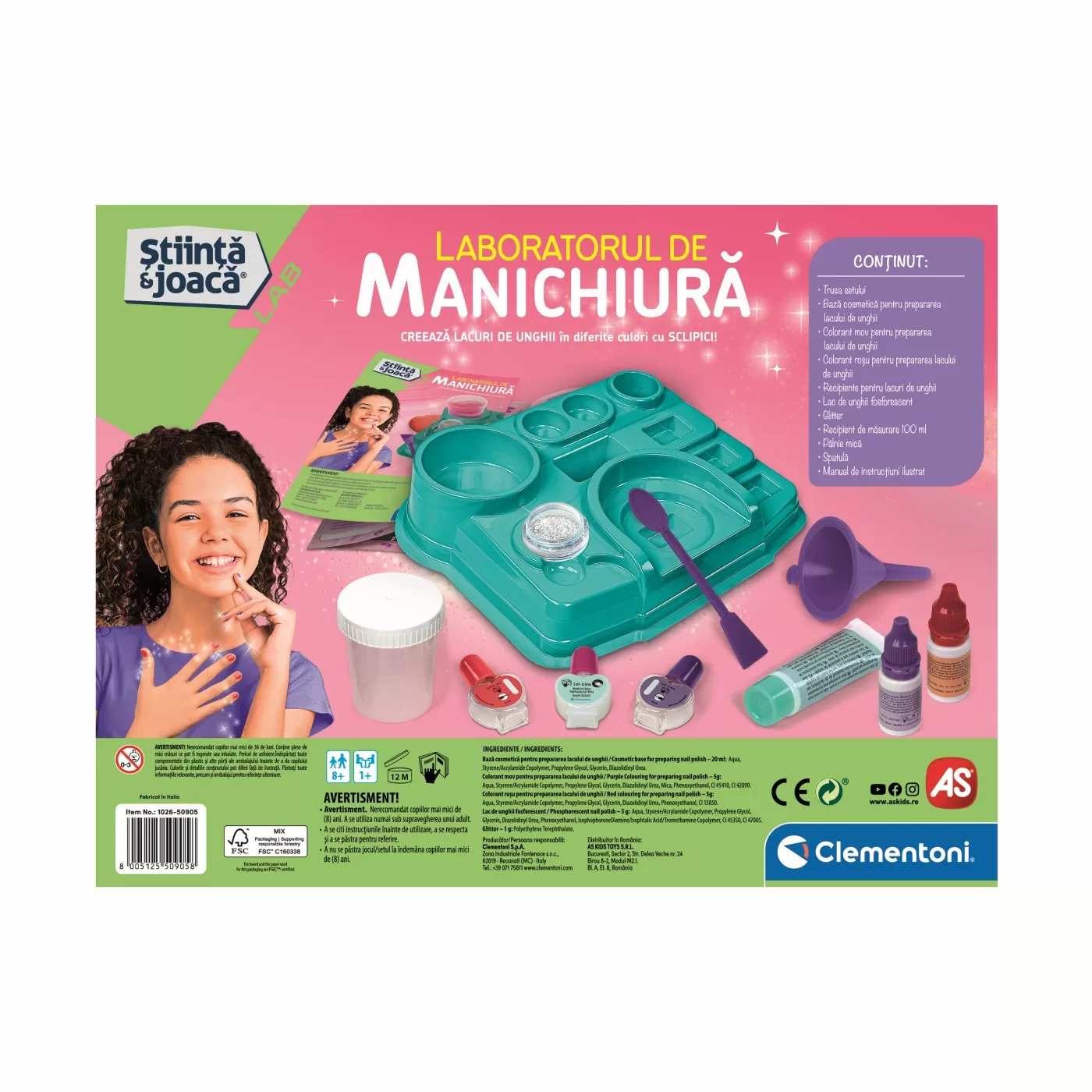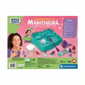 Dezlantuie-ti imaginatia cu acest laborator de unghii uimitor! Creeaza lacuri colorate amestecand baza si colorantii furnizati cu kitul si decoreaza-ti unghiile cu autocolante si sclipici, folosind masa de lucru ca statie de laborator.