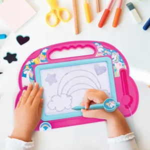 Deseneaza nenumarate desene oriunde te-ai afla cu Magic Scribbler Fantasy Dreams. O tablita, o radiera magica, un stilou magnetic prevazut cu snur-pentru a nu se pierde, si doua stampile ii ofera copilului posibilitatea de a scrie si sterge de nenumarate ori. Astfel, distractia nu are limite!Deseneaza desene dinamice de dinozauri si fa-le si mai interesante folosind stampilele,creand oua de dinozaur si amprente.Deseneaza-sterge cu o singura miscare si ia-o de la capat!Ideal ca si cadou, stimuland dezvoltarea imaginatiei si a exprimarii de sine a copilului. In plus, nu exista riscul de a face mizerie. Nu contine vopsele si, prin urmare, nu pateaza. Ce este cel mai bun? Nu mai trebuie sa va faceti griji cu privire la imperfectiunile de pe tablourile dvs. deoarece puteti sterge si desena de cate ori doriti!
