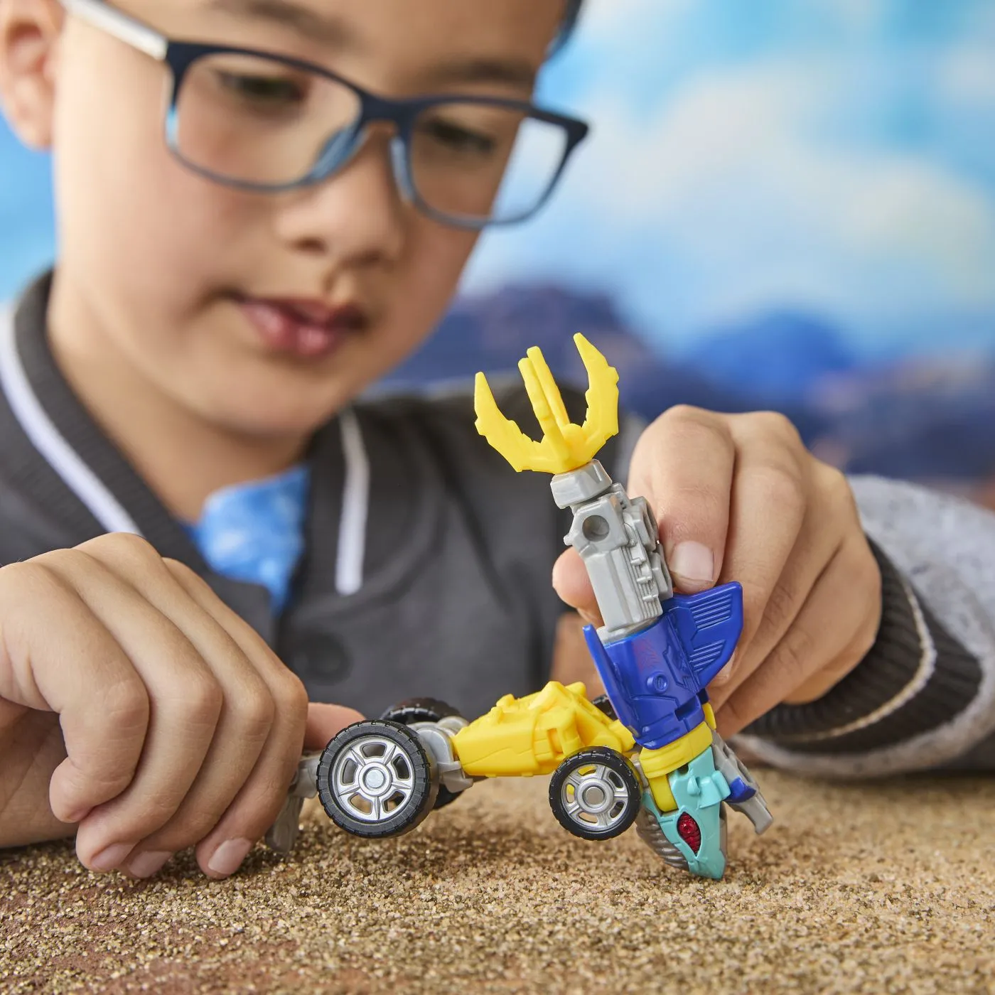 Transformers CYBERWORLD robot convertibil. In Transformers CYBERWORLD, copiii decid ce se intampla si totul incepe cu jucarii minunate precum figurinele Cyber Changers. Aceasta jucarie Transformers de 10 cm se transforma din modul robot in modul alternativ si este suficient de simpla pentru copiii cu varsta de 6 ani si peste. Ofera copiilor un plus de inspiratie pentru povestiri cu jucariile CYBERWORLD suplimentare (fiecare vanduta separat, in functie de disponibilitate) si descopera personaje unice, moduri alternative, medii si multe altele. Fanii obiectelor de colectie Transformers, precum si noii veniti, vor adora sa descopere aceasta abordare a universului Transformers, unde singura constanta este schimbarea. Acest pachet contine personajul Sky-Byte.