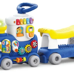 Jucarie de impins 4 in 1 Trenut combina doua parti detasabile partea de tren si scaunul. Partea cu trenul ofera o multime de jocuri pentru copii, inclusiv o varietate de sunete, muzica si efecte luminoase. Scaunul poate fi transformat intr-un vagon pentru transportarea si depozitarea jucariilor. Acesta este cadoul perfect pentru copiii cu varste cuprinse intre 1 si 3 ani. Caracteristici 4 moduri de joaca(roaba, carucior, carucior pentru transportul jucariilor si scaun de joaca), 9 jocuri educative(o varietate de jocuri pentru dezvoltarea copilului), o varietate de muzica si efecte sonore de tren(sunete si melodii interesante), compartiment de depozitare(un loc convenabil pentru a depozita jucariile), panou de blocuri(un panou de joaca pentru dezvoltarea abilitatilor motorii si cognitive). Beneficiile pe care le aduce sunt dezvoltarea motricitatii (jocurile cu rostogolirea, mersul si deplasarea vagonului ajuta la dezvoltarea abilitatilor motorii mari), dezvoltare senzoriala(efectele sonore si luminoase stimuleaza perceptia auditiva si vizuala), dezvoltare cognitiva(jocurile educative si panoul cu blocuri ajuta la dezvoltarea gandirii logice si a abilitatilor de rezolvare a problemelor), interactiunea sociala(posibilitatea de a se juca cu alti copii promoveaza dezvoltarea abilitatilor de comunicare), siguranta si confort(stabilitatea ridicata a designului si scaunul moale asigura confortul si siguranta in timpul jocului). Jucarie de impins 4 in 1 Trenut va fi un companion excelent pentru bebelus, contribuind la dezvoltarea sa si oferind jocuri distractive si active.