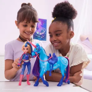 Creeaza acasa aventuri fermecatoare Academia Unicorn cu papusile la moda Sophia, Ava si Isabel. Inspirate din serialul animat NETFLIX si din seria de carti de succes in care prietenia tine fraiele, aceste papusi de 24,1 cm pentru fete dau viata personajelor. Frumos detaliata din cap pana in picioare, personalitatea efervescenta a Avei iese la iveala in parul ei cu suvite (accesoriu de coafat inclus) si in tinuta ei caracteristica de calaret de unicorn rochia roz si albastru-verzui, pantaloni ombre cu marcaje Magia plantelor, cizme florale si agrafe de par, manusi si accesorii pentru papusi cu centura cu fluturi. Cu 9 puncte de articulatie, pozitioneaz-o pe Ava in timp ce protejeaza Insula Unicornului si magia sa si calareste in aventura cu unicornul ei, Leaf (vandut separat). Legaturile magice dintre elevii Academiei Unicorn si unicornii lor vor starni povesti pline de imaginatie. Pentru mai multe moduri de a experimenta Academia Unicorn alaturi de personajele tale preferate, cauta papusile Sophia si Isabel si unicornii lor, Wildstar Lumina Curcubeului si River (suvoi) (fiecare se vinde separat) si extinde-ti lumea. Pentru copiii carora le plac unicornii si jucariile cu cai, papusile si accesoriile, jocurile de casa de papusi, jucariile de colectie, jucariile de plus si multe altele, jucariile Academia Unicorn sunt cadouri distractive de de ziua de nastere pentru fete sau cadouri pentru orice ocazie.