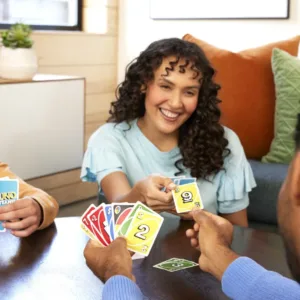 UNO Teams este un nou mod de a juca jocul clasic! Jucatorii sunt in continuare potriviti dupa culoare, numar si simbol, dar in loc ca fiecare persoana sa fie pe cont propriu, ei se imperecheaza si joaca impreuna pentru a castiga. Cartile si regulile speciale ii ajuta pe coechipieri sa lucreze impreuna, dar ambii jucatori trebuie sa scape de toate cartile din mainile lor pentru a castiga. Si nu uita, cand tu (sau partenerul tau!) ajungi la ultima carte, nu uita sa strigi &bdquoUNO!&rdquo UNO Teams este inca jocul clasic pe care jucatorii il cunosc si il iubesc, dar jucat in echipe de cate doi! Cartile speciale precum Wild Team Play si Wild Team Draw 4 ajuta echipele sa castige impreuna. Joaca o carte cu simbolul pass si jucatorii pot pasa o carte la alegere partenerului lor. Daca un coechipier iese din joc, acesta ia jumatate din cartile din mana partenerului sau si continua jocul. Nu uitati, atunci cand jucatorii ajung la o singura carte, ei (sau partenerul lor) trebuie sa strige &bdquoUNO!&rdquo