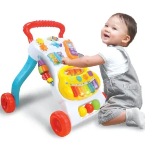 Antemergatorul cu centru de activitati este o jucarie educativa si interactiva, perfecta pentru copiii cu varsta incepand de la 6 luni. Aceasta jucarie multifunctionala este conceputa pentru a stimula dezvoltarea motorie si cognitiva a celor mici, oferindu-le oportunitati de joaca si invatare prin diverse activitati captivante. Vine echipat cu un telefon mobil detasabil, ideal pentru a incuraja jocul de rol si imaginatia copiilor. Pianul cu 5 note si lumini intermitente adauga un element de divertisment muzical, incurajand dezvoltarea abilitatilor auditive si a coordonarii mana-ochi. Antemergatorul dispune si de diverse elemente interactive, cum ar fi rotitele si butonul glisant pentru melodii. Acestea ofera ore intregi de distractie si invatare, stimuland curiozitatea si explorarea activa. Cartea cu clapeta este perfecta pentru dezvoltarea abilitatilor motorii fine, in timp ce oglinda sigura pentru bebelusi incurajeaza auto-recunoasterea si explorarea faciala. Zornaitorile si bilele rotative adauga un element suplimentar de joaca, stimuland senzorial copiii prin sunete si miscari. Butoanele care produc sunete de animale sunt ideale pentru invatarea si recunoasterea sunetelor diferitelor animale, contribuind astfel la dezvoltarea limbajului si a memoriei auditive. Melodiile amuzante si efectele sonore completeaza experienta de joaca, oferind o varietate de sunete care mentin interesul si entuziasmul celor mici. Manerul usor de prins este special conceput pentru a ajuta bebelusii sa stea in picioare si sa-si mentina echilibrul, incurajand primii pasi si dezvoltarea abilitatilor de mers. Acesta ofera suportul necesar pentru a preveni caderile si pentru a stimula increderea in sine a micutilor exploratori.