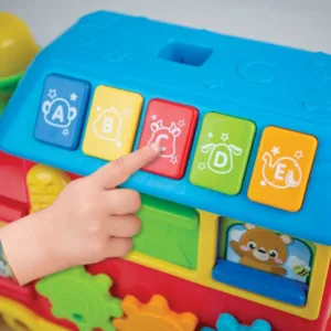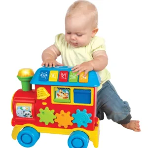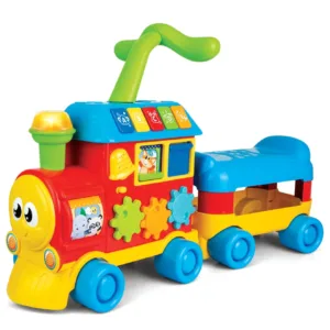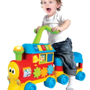 Trenuletul antemergator este o jucarie captivanta si educativa, perfecta pentru copiii cu varsta incepand de la 12 luni si mai mari. Acesta ofera o gama variata de activitati distractive si functionalitati interactive, fiind ideal pentru perioada explorarii si invatarii primilor pasi ai copilului. Jucaria este conceputa sa fie usor de utilizat si sa stimuleze dezvoltarea motrica si cognitiva a micutilor intr-un mod sigur si distractiv. Trenuletul ofera trei activitati principale joc pe podea, impingere cu maner si calatorie. In timpul jocului pe podea, copiii se pot bucura de activitati interactive care ii introduc in lumea culorilor, formelor si texturilor. Aceasta etapa este esentiala pentru dezvoltarea abilitatilor motorii fine si explorarea senzoriala. Cand copiii devin mai increzatori in mers, pot utiliza trenuletul ca antemergator, tinandu-se de manerul special conceput pentru o priza confortabila si sigura. Odata ce micutii sunt pregatiti pentru aventuri mai mari, trenuletul poate fi transformat intr-un vehicul de calatorie prin prinderea remorcii atasabile. Aceasta nu doar ca extinde jocul si explorarea, dar si ofera un spatiu util de depozitare dedesubt, perfect pentru a transporta jucarii sau alte lucruri importante pentru micuti. Luminile si sunetele jucariei adauga o dimensiune suplimentara de distractie si invatare. Locomotiva luminoasa nu doar ca invata literele si culorile, dar si ii atrage pe copii prin efectele vizuale si auditive captivante. Melodiile vesele si sunetele amuzante completeaza experienta de joc, contribuind la stimularea auditiva si dezvoltarea receptiva a micutilor.