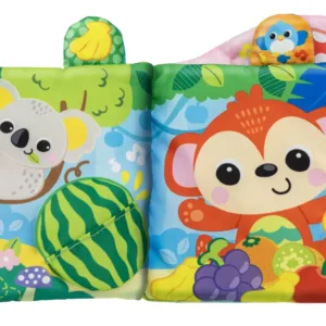 Cartea senzoriala moale si distractiva este o jucarie captivanta si educativa pentru copiii cu varsta incepand cu 3 luni si peste. Conceputa pentru a stimula simturile si pentru a oferi o experienta interactiva placuta, aceasta carte este ideala pentru micutii care descopera lumea inconjuratoare. Carte are o textura moale si placuta, perfecta pentru manutele delicate ale bebelusilor. Cartea senzoriala include si elemente interactive care capteaza atentia copiilor. Butonul de iluminare si sunete ofera efecte sonore si melodii vesele, ceea ce adauga o dimensiune de divertisment si stimulare auditiva. Materialul de dentitie texturat este proiectat sa ajute la calmarea gingiilor sensibile ale bebelusilor in timpul perioadelor de dentitie. Textura variata si sigura asigura o experienta placuta si sigura pentru cei mici, oferind in acelasi timp o solutie de confort in momentele de disconfort. Cartea se poate fixa cu usurinta la carucior, patut sau scaun auto. Designul colorat si atragator al cartii, impreuna cu sunetele si luminile, stimuleaza interesul vizual al copiilor si ii motiveaza sa exploreze in continuu. Imaginile vesele si prietenoase ii vor captiva pe cei mici si ii vor invita sa descopere fiecare pagina cu bucurie si curiozitate.