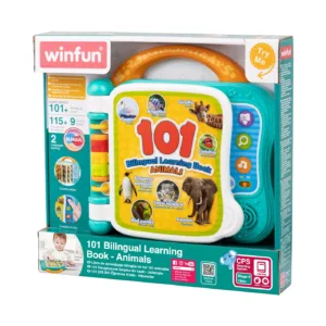 Cartea de invatare interactiva, bilingva, este o resursa educativa captivanta ce introduce 101 animale in doua limbi. Paginile sunt luminoase, colorate si interactive, oferind sunete si melodii distractive pentru o experienta de invatare plina de bucurie. Cu 3 moduri de joc diferite, copiii se pot bucura de diverse activitati – Modul de invatare ii ajuta sa memoreze numele animalelor si sa inteleaga sunetele acestora. – Modul intrebare ii provoaca sa identifice corect animalele prezentate. – Modul Muzica ii incurajeaza sa exploreze si sa se distreze cu sunete si melodii distractive. Cu un maner de transport, aceasta carte interactiva poate fi luata oriunde pentru distractie portabila. Functionand in limba engleza si spaniola, ofera oportunitati de invatare bilingva. Este jucaria perfecta pentru copiii cu varsta de 18 luni +, oferindu-le o modalitate distractiva si interactiva de a explora lumea animalelor si de a-si dezvolta abilitatile cognitive si lingvistice intr-un mod adaptat varstei lor.