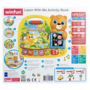 Cartea interactiva de invatare este o jucarie perfecta pentru copiii cu varsta incepand cu 12 luni si peste. Cu 13 pagini colorate si 3 moduri de joc diferite, aceasta carte promite sa fie o sursa de distractie si invatare pentru cei mici. Fiecare pagina a cartii este conceputa pentru a captiva atentia copiilor si pentru a stimula explorarea si invatarea intr-un mod interactiv. Modul de invatare este ideal pentru introducerea conceptelor de baza precum literele, obiectele si formele. Copiii pot interactiona cu imaginile colorate si cu textele explicative pentru a invata si a recunoaste diverse elemente din jurul lor. In modul de intrebare, copiii sunt provocati sa raspunda la intrebari legate de continutul cartii. Acest mod ii ajuta sa isi consolideze cunostintele si sa dezvolte abilitati de gandire critica si rezolvare de probleme intr-un mod ludic si motivant. Modul muzical adauga o dimensiune de divertisment si stimulare auditiva. Cele 5 butoane luminoase de pe carte redau sunete si melodii distractive, care ii incurajeaza pe copii sa exploreze si sa descopere diferite ritmuri si melodii. Grafica colorata si designul interactiv al cartii sunt concepute special pentru a stimula interesul vizual al copiilor si pentru a le oferi o experienta de invatare placuta si captivanta. Imaginile viu colorate si butoanele luminoase atrag si mentin atentia copiilor, invitandu-i sa exploreze si sa invete in moduri diferite si creativ.